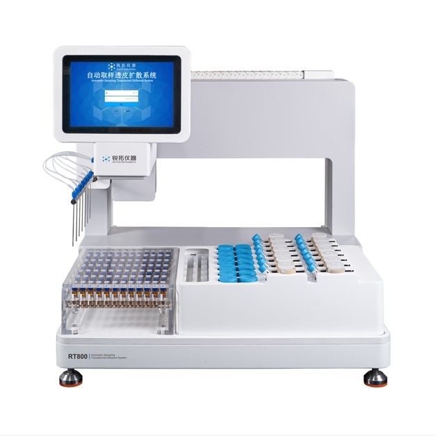 RT800 自動取樣經皮吸收系統符合USP<1724>的要求,用於軟膏、乳膏、塗劑、薄膜劑、噴霧劑等製劑的經皮吸收擴散測試,以經皮吸收模型研究藥物擴散效率。