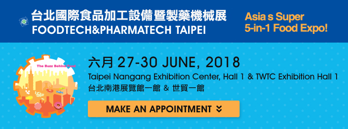 參展2018台北國際食品加工設備暨製藥機械展 參展2018台北國際食品加工設備暨製藥機械展 參展日期:2018.6.27(三) - 2018.6.30(六) 參展地點:台北市南港區經貿二路1號4樓 (南港展覽館1館4樓) 感謝各位蒞臨參訪 !