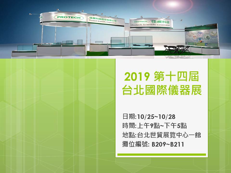 參展2019第14屆台北國際儀器展 參展日期:2019.10.25(五) - 2019.10.28(一) 參展時間:09:00 - 17:00 參展攤位:B209-B211 感謝各位蒞臨參訪 ! 成果展示